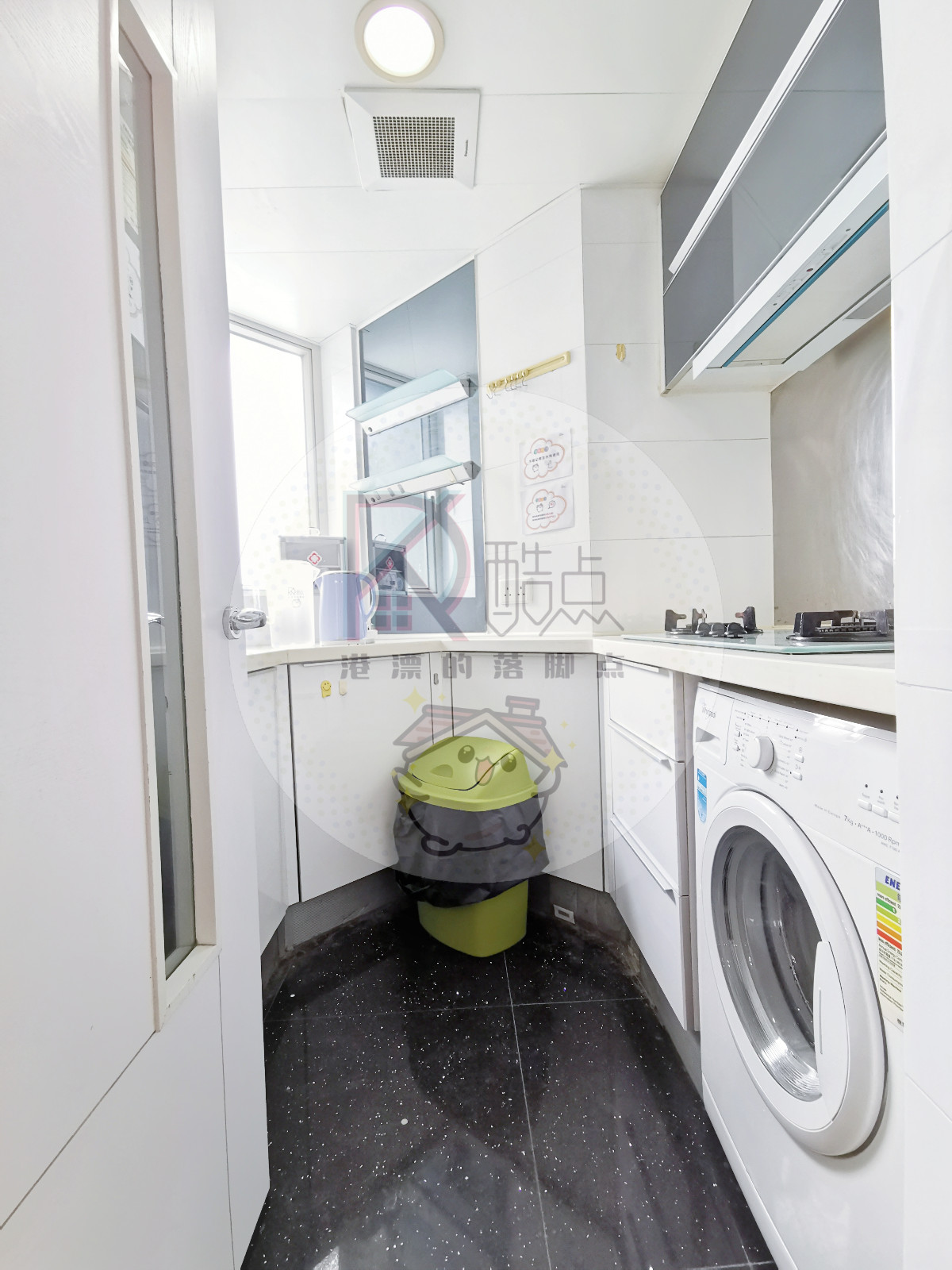 电器:洗烘一体洗衣机、房门独立电子密码门锁、冰箱、微波炉、煮食炉、抽油烟机、热水器、热水煲、大门独立电子密码门锁
