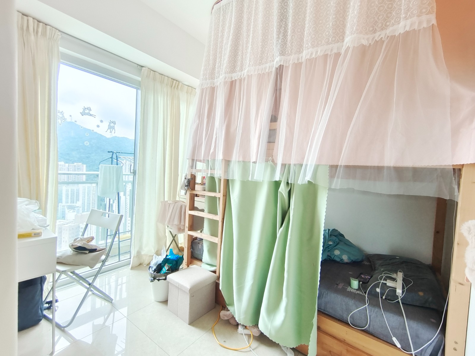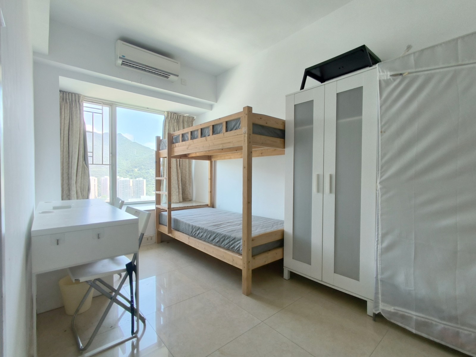 配置全套家具,拎包入住。包括衣柜、床架、床垫、窗帘、书桌、椅子、空调等(PS:少数公寓有沙发、茶几等额外情况,看公寓图片来)