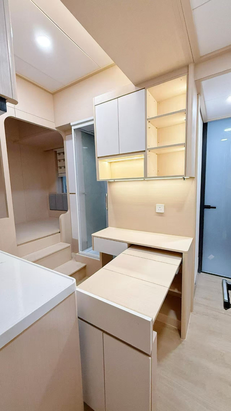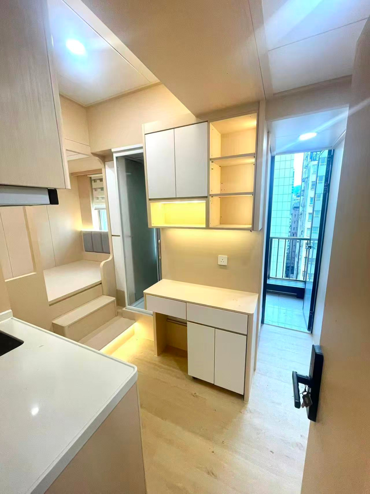 油麻地窝打老道studio B房-超赞装修多储物空间,带大露台一览城市景观,四大校全部15分钟即达,油麻地地铁上盖
