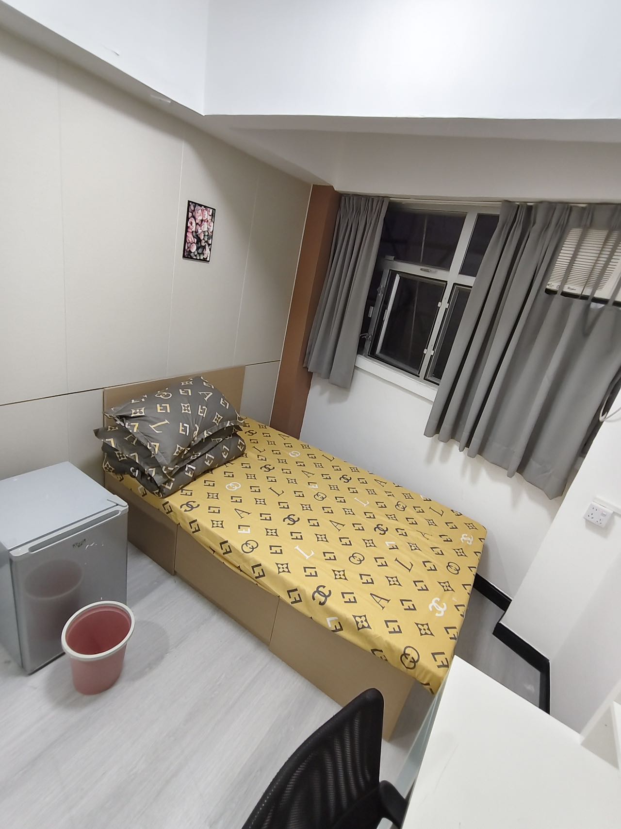 设备配置:房间内都有床、床垫、衣架、椅子、冰箱、洗衣机、窗帘、空调等家具家电、单位內还配备有公用厨房、自助式洗衣机✔