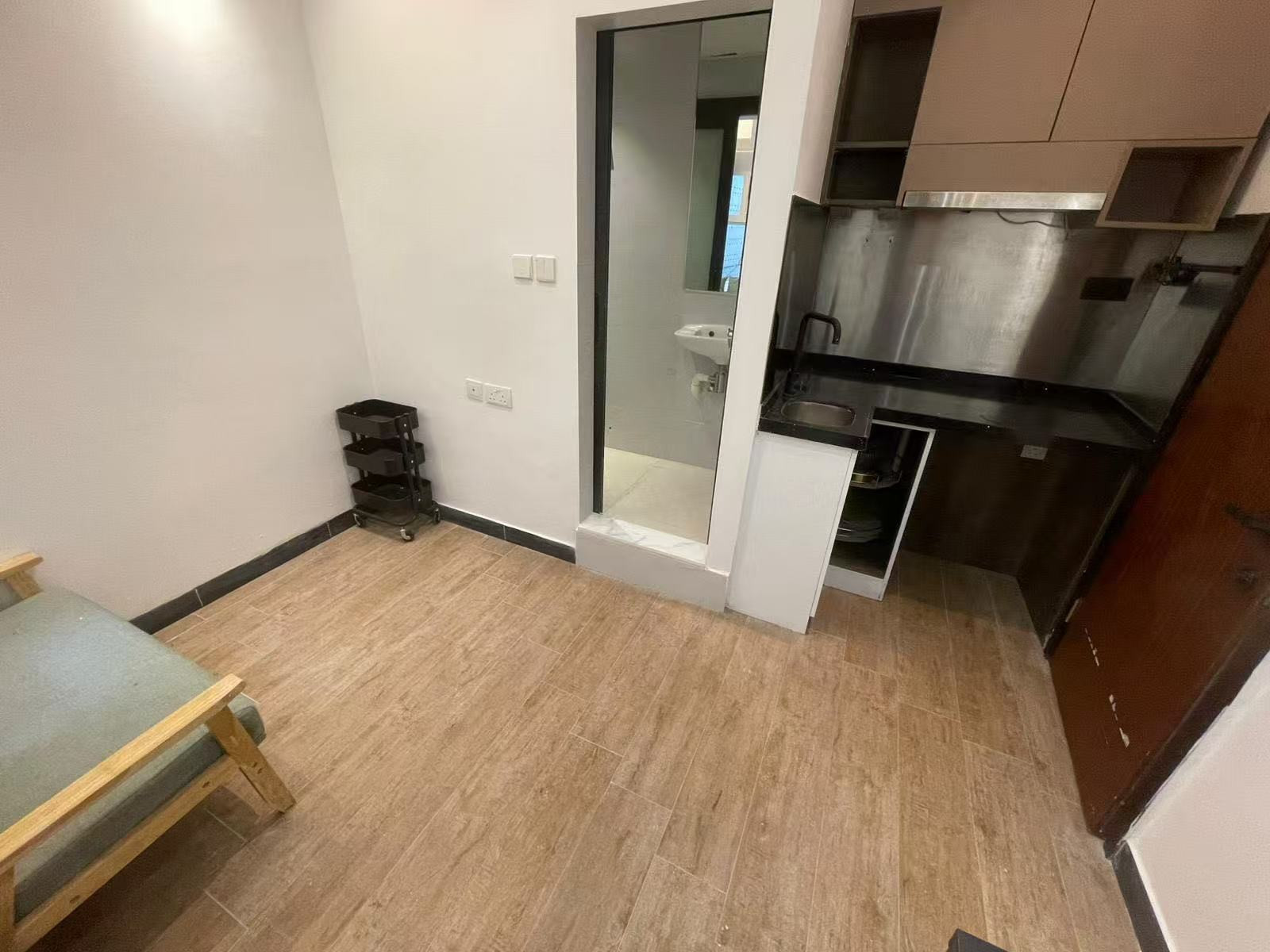 大楼带电梯,全新装修一房兩廳,長方形睡房另外可以加放書枱和衣櫃,L型櫥櫃,大廳四正可以分開飯廳和客廳。